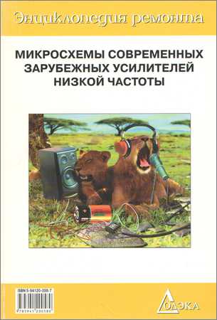 Микросхемы современных зарубежных усилителей низкой частоты — Книга является вторым выпуском, посвященным интегральным усилителям мощности низкой (звуковой) частоты. Приводятся данные основных мировых производителей (более 25 фирм) интегральных усилителей мощности (около четырехсот наименований) для различных типов электронной аппаратуры (радио и телеприемные устройства, аппаратура связи и телефония, стационарные, переносные и автомобильные звуковоспроизводящие устройства, электронные игрушки, синтезаторы звука и т.д.) без разделения их по назначению (если их назначение не предопределяет конструктивных или иных особенностей), так как деление их по этому признаку фирмами-разработчиками весьма условно. В книге по возможности максимально сохранена стилистика, терминология и сокращения фирм-разработчиков. В книге ограниченно применяются качественные характеристики, так как значения, указанные в справочных данных фирм-разработчиков и фирм-производителей, получены с использованием различных методик и стандартов. Данное издание рассчитано на подготовленных радиолюбителей, самостоятельно занимающихся ремонтом зарубежной электронной аппаратуры, а также работников сервисных служб.